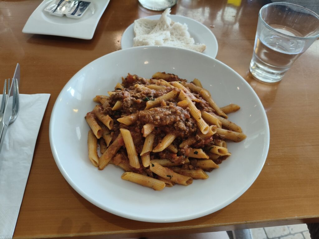 Helaas begon de vakantie qua eten niet helemaal zoals gehoopt: we hadden de 2 dagen voor we op vakantie gingen pittig gegeten, en blijkbaar vond mijn maag dat niet zo leuk… Gelukkig weet ik inmiddels wat werkt voor mij als ik last heb van mijn maag: Proberen zo goed mogelijk te drinken (kleine slokjes, heet water met gember als ik misselijk ben), en pas wat gaan eten als ik ook echt zin heb in eten. Meestal begin ik dan met fruitsap en chips. Niet het meest gezonde ever, maar mijn buik lijkt daar goed mee om te kunnen gaan.